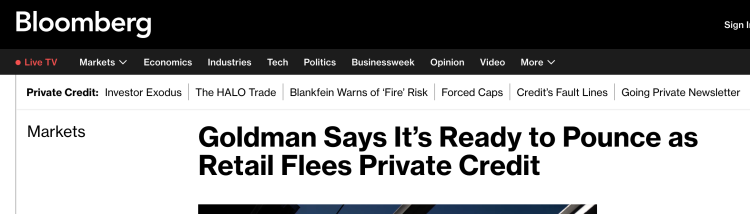 高盛私人信贷公司(Goldman Sachs Private Credit Corp.)管理着一家所谓非交易型业务发展公司。根据一份文件,其第一季度满足了相当于其已发行股份4.999%的赎回请求。这与包括Blue Owl Capital Inc.在内的同业形成鲜明对比,后者的赎回请求大幅高于全行业5%的上限。